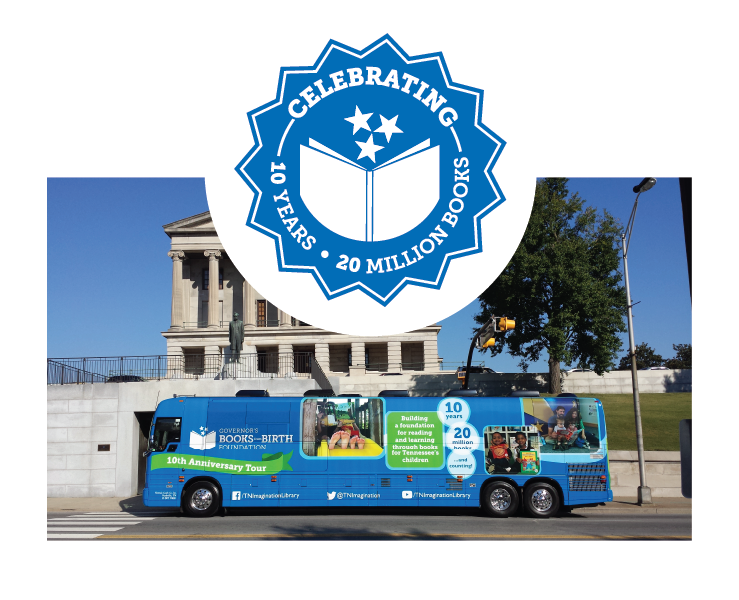 GBBF celebrates 10th anniversary, reaches 20 million books distributed, and rebrands with new logo. GBBF celebrates with a bus tour across the state, visiting county affiliates and hosting community events.
